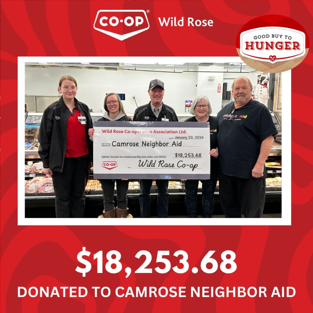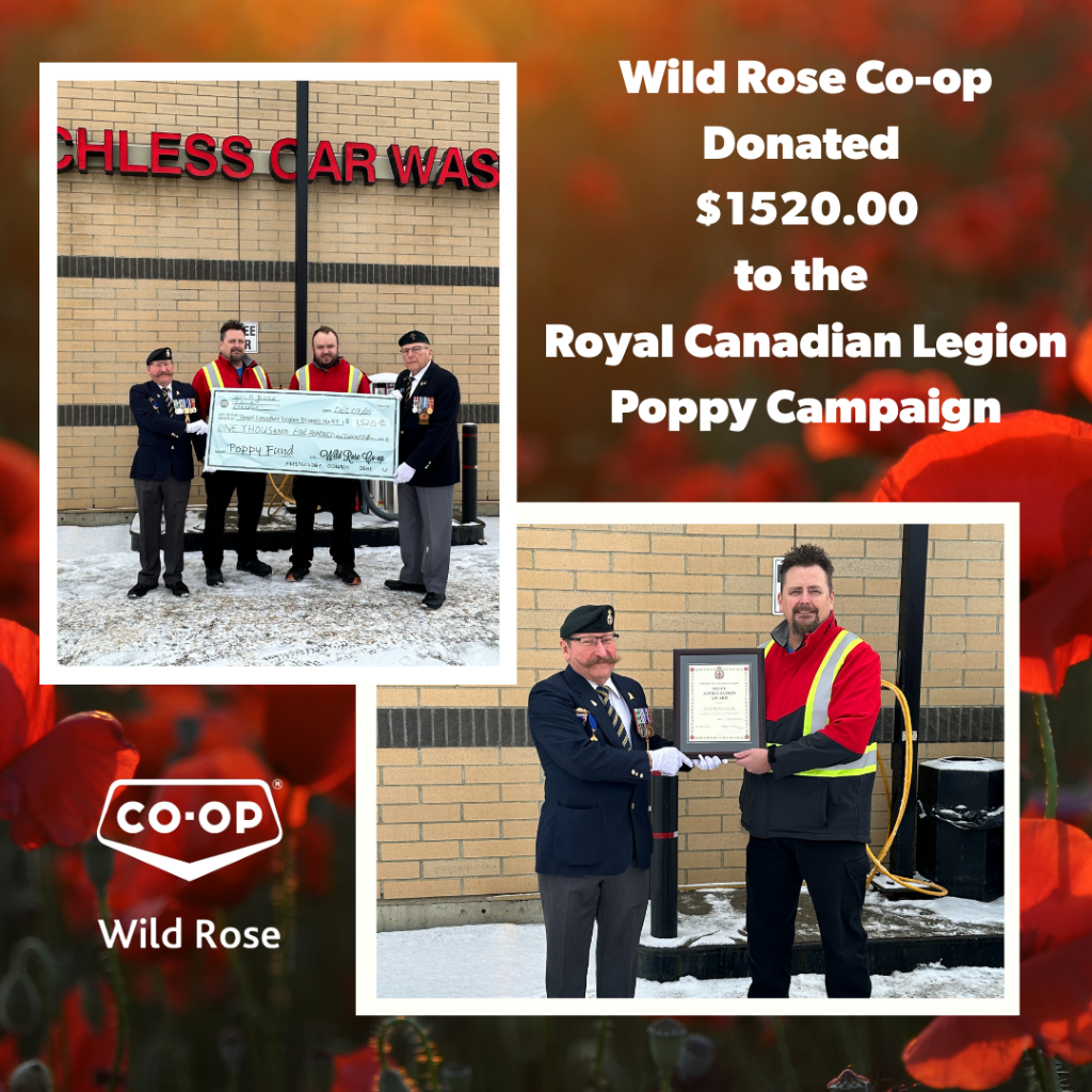 In honour of our veterans and in support of local legions, Wild Rose Co‑op contributed $1,520 to the annual Poppy Campaign.