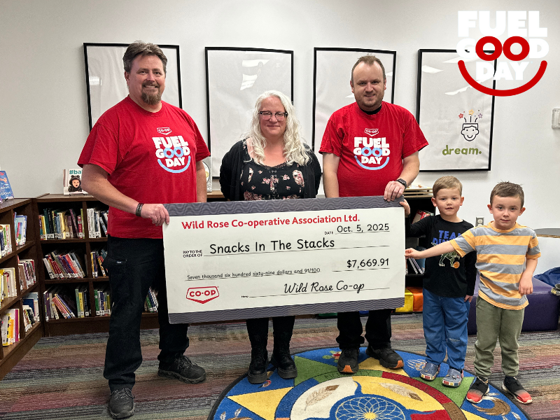 On Fuel Good Day, every litre pumped helped make a difference. Thanks to strong community participation, we raised $7,669.91 in support of the Snacks in the Stacks program at the Camrose Public Library — a program providing accessible snacks for youth and families visiting the library.